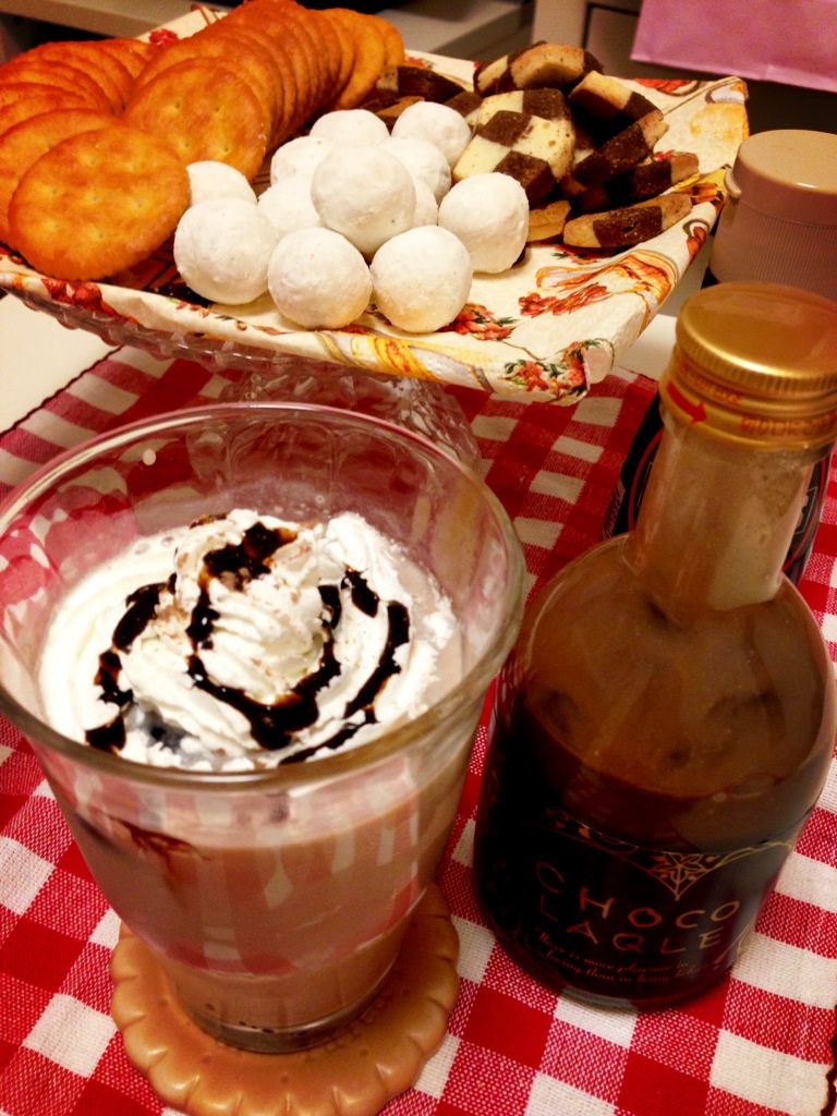あのリキュールを使う時が…!!なつみちゃんとは何かしら毎晩お酒飲んでいたような…。(笑)お菓子も用意して、ラテっぽく作ったチョコレートカクテル!美味しかった♪