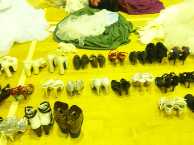私が遊びで「靴屋さ~ん♪」と勝手に並べ始めたらみんなが協力してくれて、こんなにたくさん集まりました。(笑)衣装によって靴も変えたりしたので、靴の数は人数以上!最終的にはみんな写メってて面白かった。(笑)