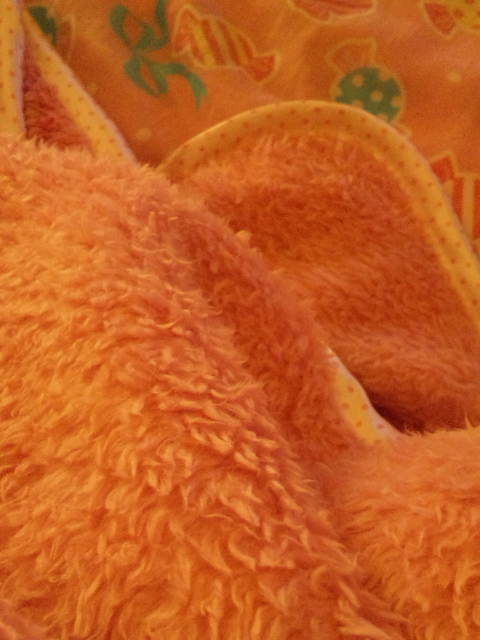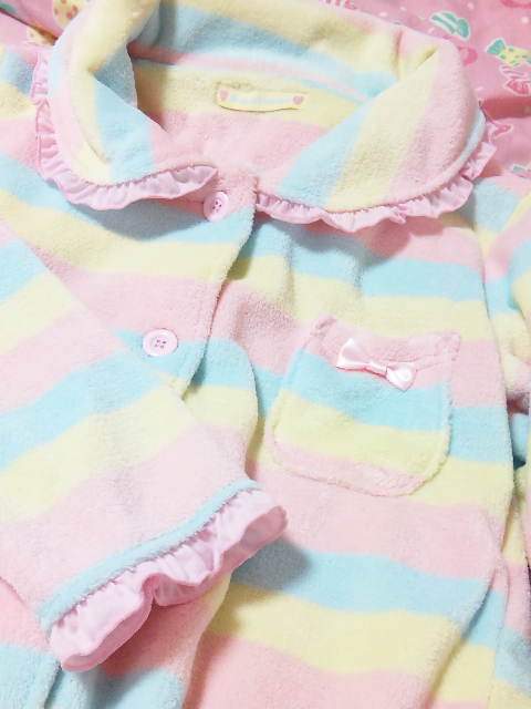この前うちに泊まりに来た時に、フリフリなパジャマを貸したらすごく喜んでいたのを思い出して。(笑)家の中だったらかわいらしい服も着れるし♪最近寒いしモフモフなメルヘンパジャマにしてみました。勝手にオソロで申し訳ないけど。(笑)