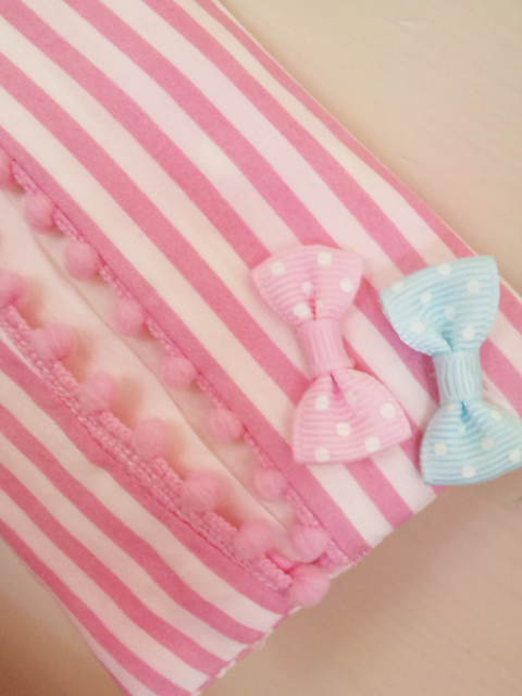 一応ドットとストライプのリバーシブルなんだけど、ストライプの方にリボン付けちゃったからストライプだけで使おうかな…。(笑)