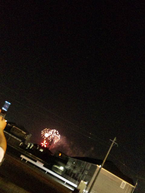今日バイト中に必死に写メった花火です。(笑)お客さんも来ないし、みんなで花火眺めました。必死に写メるが微妙な感じに…。花火inバイト先は今年が初だったんですが、結構位置的にはいい感じで見やすかった~!プチ穴場。たしか去年はライブでバイト休んだんだったかな?一昨年は何で休んだんだ~。