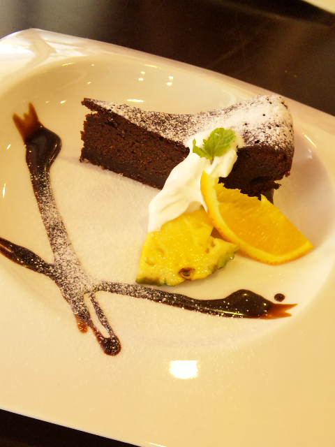 ランチセットのミニドルチェ付き。全然ミニじゃなかった!(笑)私は迷わずガトーショコラ…!!!