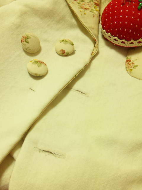 検定練習で今更ながらボタンホール開けるのにハマりました。(笑)ほったらかしにしてたジャケットを今更仕上げ。秋あたりから着たいなぁ~!