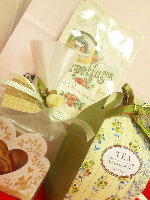 さっき母の日のプレゼント渡しました。今年は紅茶とクッキーをあげました。オマケにアンティークなお店で買った使用済などこかの国のポストカード。英語かなぁ?文字がずらっーと書いてあって消印も押してあります。お母さんびっくりしてたー。(笑)