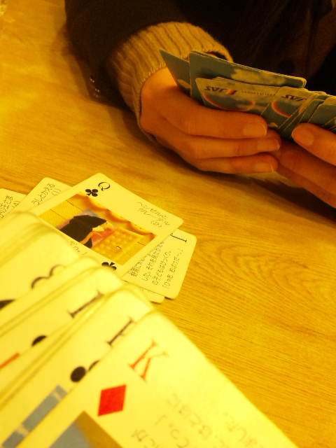 今日は急遽お友達とジョイフル!メインのご飯が終わり、デザートの為にお腹空かし中。……トランプで。(笑)何でトランプ持っとん!って爆笑されました。(笑)あはは。