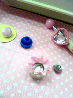 袖のギャザー寄せを忘れてくるみボタンに夢中。(笑)