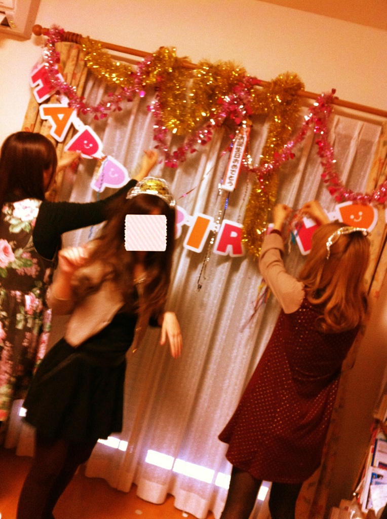 福岡帰ったときにいつもの高校メンバーで4人分の合同バースデーパーティーをした!ちゃんと浮かれたグッズを買い込んできて。(笑)