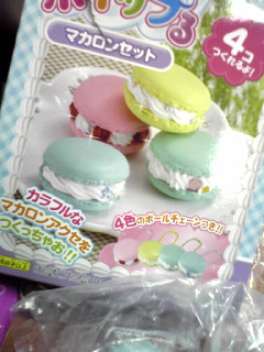 お友達が見つけてきて、学校でみんなで作りました。ちょうど4個なマカロンなんで(*´ω`*)見つけてきたお友達は、マカロンとかそんなメルヘンなのと真逆なのが好きな子なもんで、びっくらこいた。とりあえず趣味一緒な子がピンクを譲ってくれて…申し訳なかった。ピンクとサックスのマカロン並べたらこれ以上ないメルヘンさだよね。