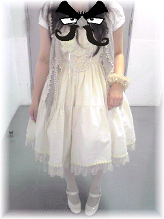 待ち時間の間に、楽屋でお友達に撮ってもらいました。顔は酷いので服だけ写してもらうよう頼みました…。(笑)出来たら綺麗なモデルさんに着て出ていただきたい…うぅ。髪も途中な状態で、かなり見苦しい姿ですいません…。写真だとスカートがあまりモフモフなってなくて残念です(´・ω・`)所詮携帯のちょっとしたカメラ機能…ちっ。ちょっといろいろごまかす為に加工とか頑張ってみたんですが、ごまかしきれてないようです。(笑)なんか変なおっさんのスタンプがあったので好奇心で押してみました。ヒゲの見事なカール…!