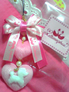 MILKかエミキュで洋服欲しかったんですが、可愛いな~とは思ってもズッキュンくるのがなかったので、今日はMILKのパンフをもらって、お友達が買う服を一緒に悩んで、結局今日は洋服買いませんでした。お買い物行ったのに私が服を買わないとは…明日はきっと雨じゃあぁ。そして、まさかのメタモでメルヘンなストラップをゲット。早速付け替えたわけですが、私の携帯には勿体ないぜ。