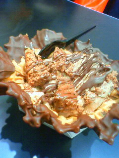 つい最近こんな田舎にも、噂のマイナスの鉄板でアイスを混ぜ混ぜするのがやってきたので、とうとうお友達と今日来てみました。かなりウマーでした…!見るからに…私どんだけチョコ好きなんだ。(笑)