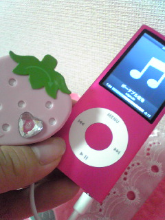 買っちまいました。今更ながらの…。一個前の第三世代のnanoを買う予定だったわけですが、買おうと予定していた前日に予想外にも新作が出ると知ってしまった私。めざましテレビに知らされた私。買うしかねーだろ第四世代(゜д゜)てなって買ってしまいました。発売日の次の日に某電気屋さんに行ったら、糞田舎は入荷に1週間もかかるって言われたんで家帰って即楽天で注文。昨日帰ってきたら無事届いてました(´-`)やっぱ楽天で頼んでよかったよー。そして、この苺すげぇんです。イヤホンのコードを収納してくれる画期的すぎるアイテム。私感動。地味に凄く便利で役に立ってます。