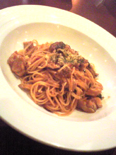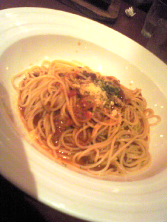 今日はミートソースで。今日は4人で食べにこれたのでよかったよかった(*´д`*)友達が頼んだ、きのことチキンのトマトソースパスタが超うまそーだったので次回は絶対それで。この写メだとミートソースが超まずそう。(笑)私の携帯やっぱ終わってるぜ。画質いい携帯欲しいなあ。