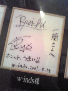 よーく考えてみたら…サインは本物ではなく写真っぽいものを縮小してズラーッといろんな芸能人のサインと写真を飾ってるわけですよ。あれ…何で芸能人の方々がこんなとこに来るんだ…博多とかなら分かるけど。そこで一枚のサインを発見。「一蘭 天神店様」…やっぱそうゆうことですよね(^-^;)