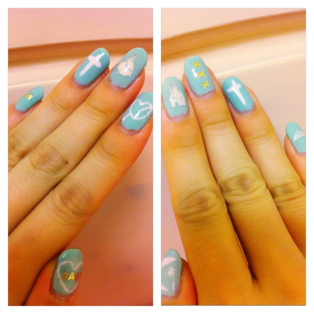 シンデレラネイル♪ちゃんとお城から出てくるようにシンデレラの走ってる向きも地味に考えた!(笑)一人暮らしをするようになって家事をするからなのか、すぐヒビ入ったりしてしまう。こまめにトップコート!