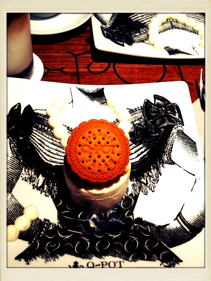 Q-potのスイーツモチーフのネックレス風な本物のケーキ。(笑)パールはクリーム♪可愛い上にすっごく美味しくて幸せだったー。