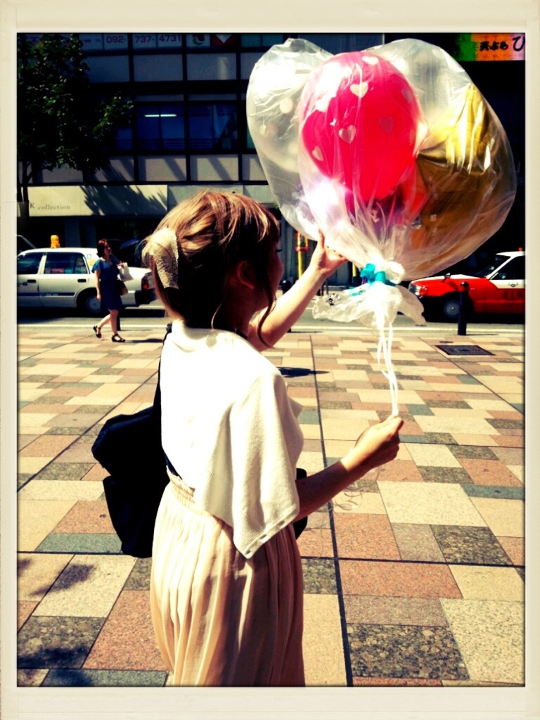 なんやかんや無事にショー終了!小道具のバルーンを買ってウキウキで天神を歩いてるとこを激写された一枚。(笑)