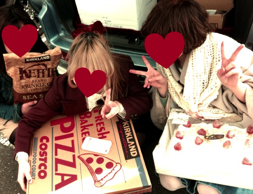 コストコのお買い物終了後に一生懸命撮った写メ。(笑)ピザもケーキもポテチも可愛い!!このピザすっごい大きいのに安くてびっくりした~。写メ見て楽しかった~と思い出に浸る(´-`)