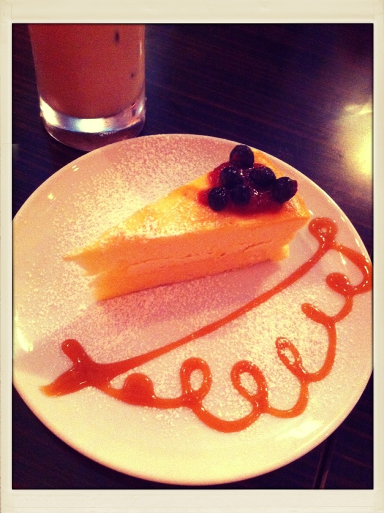 アンティークものをたくさん見に行って、帰りにカフェで休憩。チーズケーキ。
