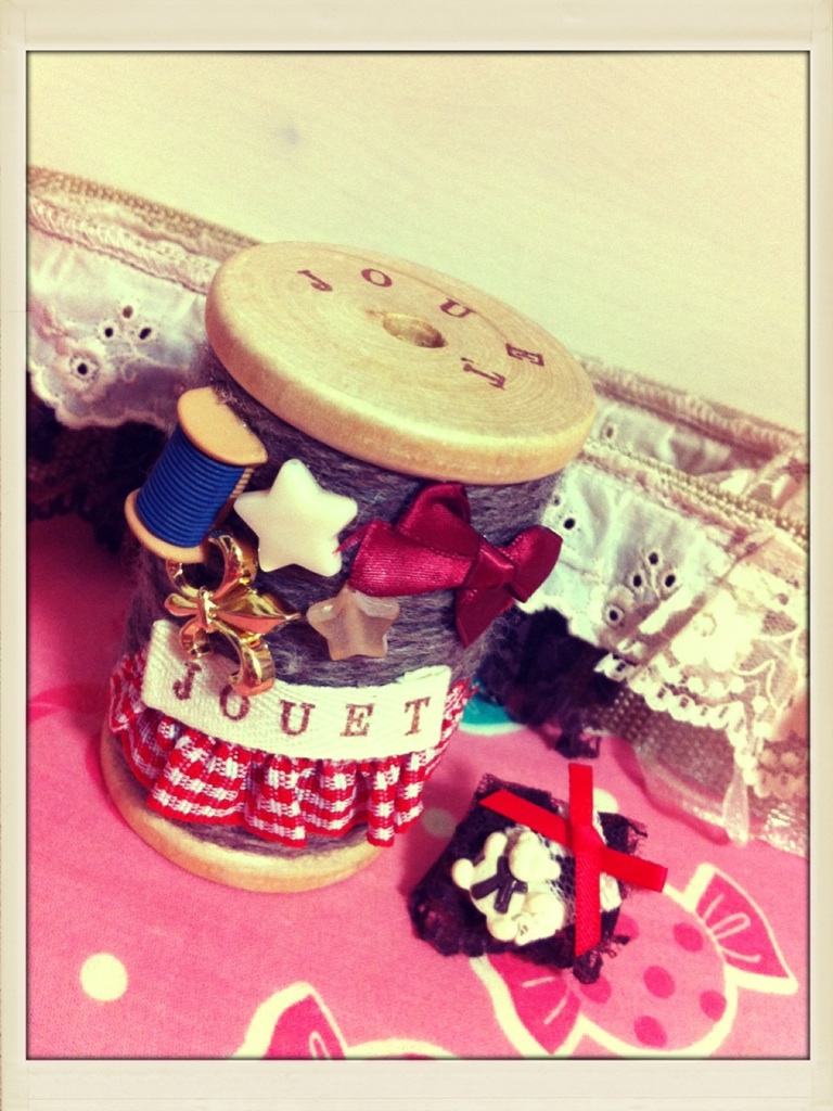 時間の使い方が下手すぎて全然できなかった…。反省です。バック紐にいろんなレース縫いつけたのと、木製ボビンブローチの仕上げ、指輪です。木製ボビン重すぎてブローチのピンが日々耐えれるか不安です。(笑)