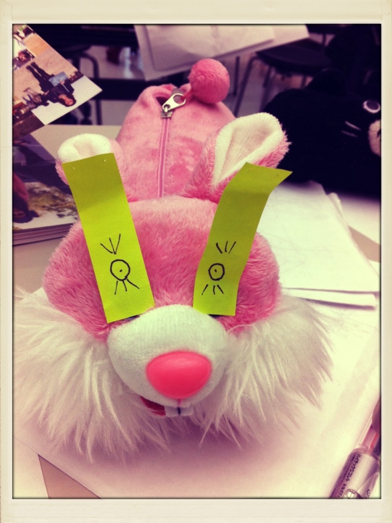 やられました。私の可愛い可愛いウサギの筆箱です。犯人はA君です。悔しいけどみんなで爆笑。(笑)